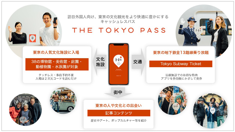 本サービスはコロナ禍からのインバウンド回復に向け、東京の文化観光体験の拡充を目指して、都内の国公立・私立の38の博物館・美術館・庭園・動物園・水族園・植物園等の文化施設の入場と、全ての地下鉄が乗り放題になる「Tokyo Subway Ticket」で構成するインバウンド向け周遊パスです。パスの購入から施設への入場まで全てスマートフォン上で完結します。